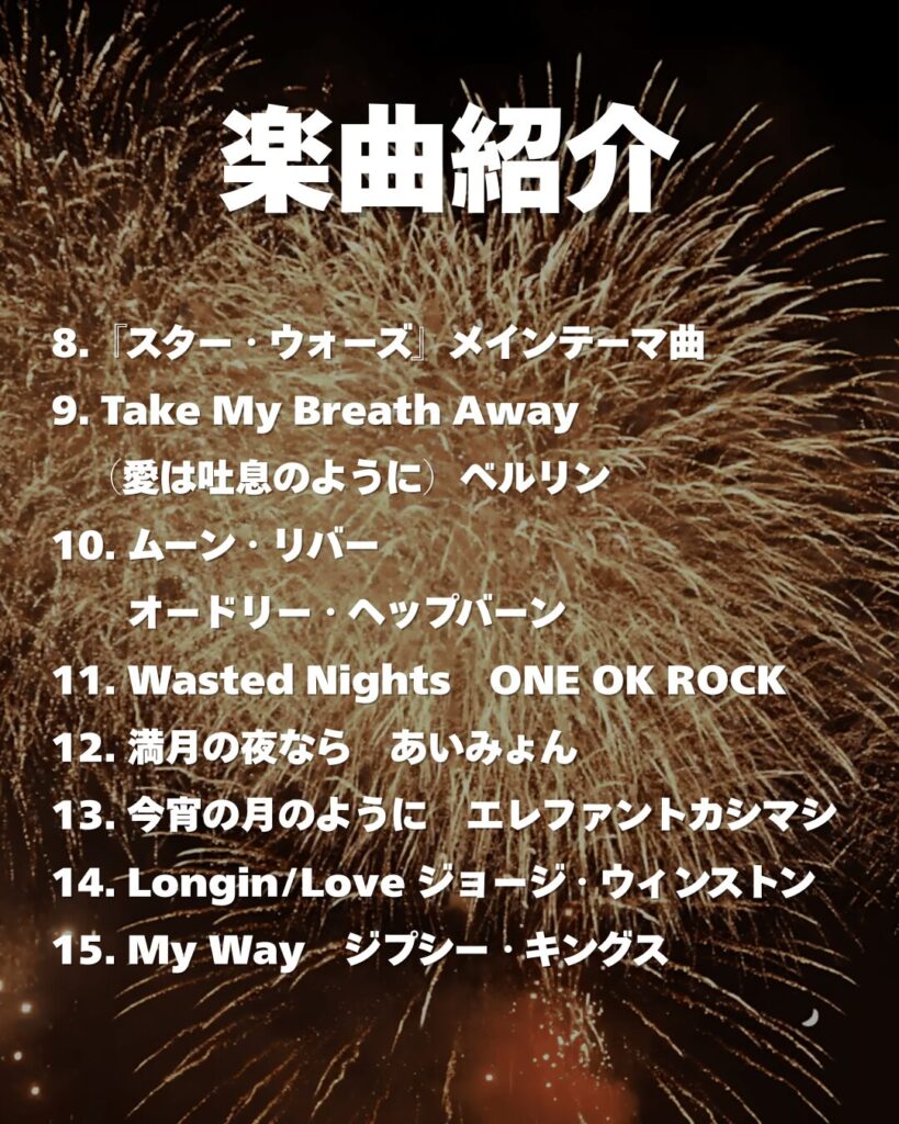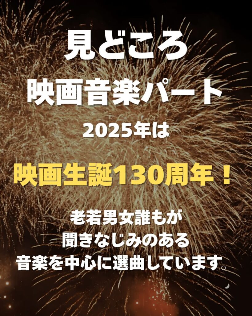 誰もが一度は耳にしたことがある、有名映画の楽曲を中心に、壮大な花火が夜空を彩ります!